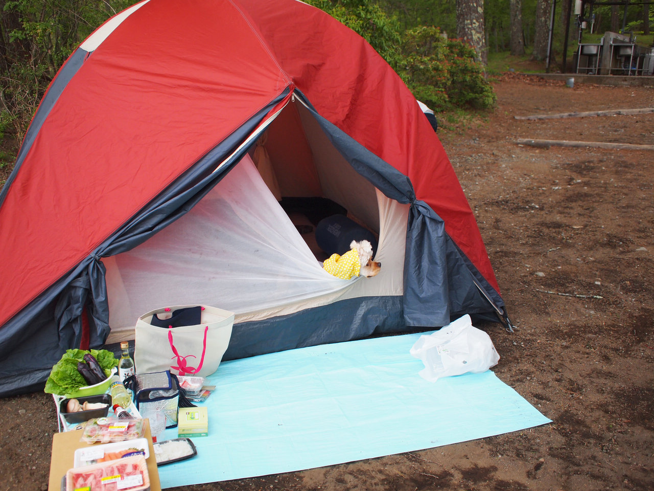 うんにょを済ませたら、だいもんはテントの中に移動~。