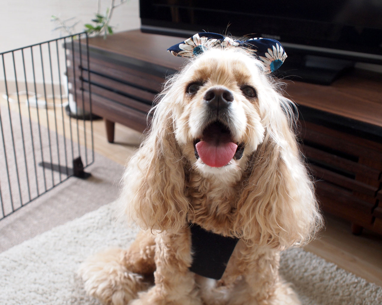 イヤーシュシュとひんやりクールネックを着けて
